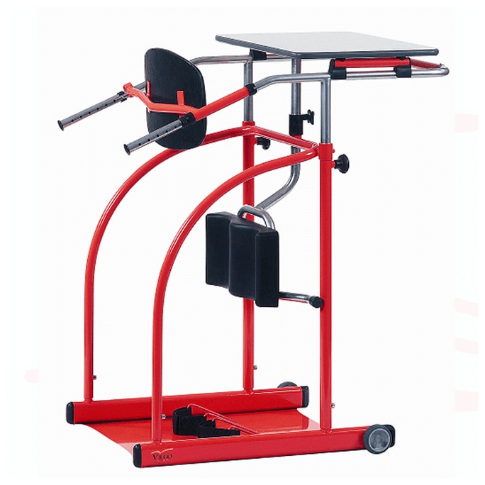 Mesa de Trabajo Integrada: Cuenta con una amplia superficie de 60 x 40 cm. Es totalmente regulable en altura (de 90 a 120 cm) y en profundidad, permitiendo que cada usuario la sitúe según su anatomía para leer, escribir o realizar ejercicios de movilidad de extremidades superiores.