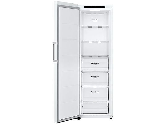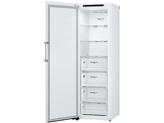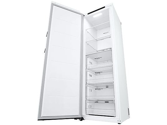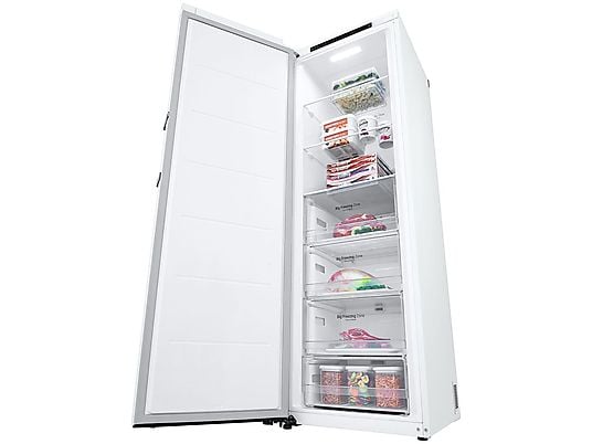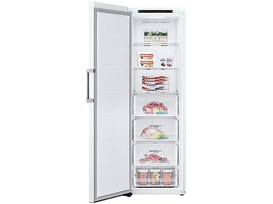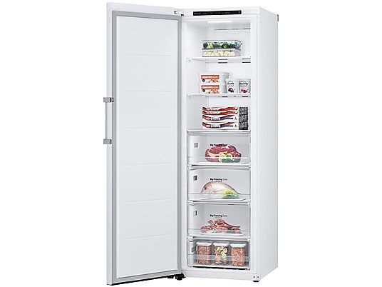 El congelador vertical LG GFT41SWGSZ combina un diseño sobrio en blanco brillante con un interior espacioso de 324 litros, pensado para familias que necesitan almacenar grandes cantidades de alimentos sin renunciar a la eficiencia ni al estilo.