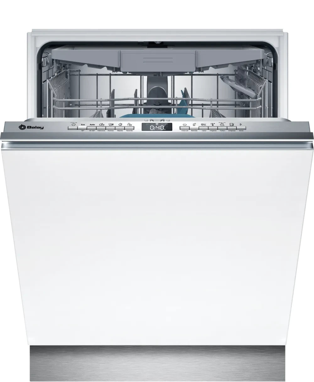 Además, incluye bandeja para cubiertos, soporte para media carga y compatibilidad con la aplicación Balay, simplificando el uso diario y la organización de tu vajilla.