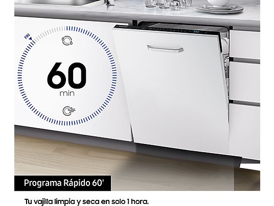 Lavavajillas integrable Samsung DW60M6050BB/EO, 14 servicios, 7 programas, Clase E, 60 cm, Sin panelar