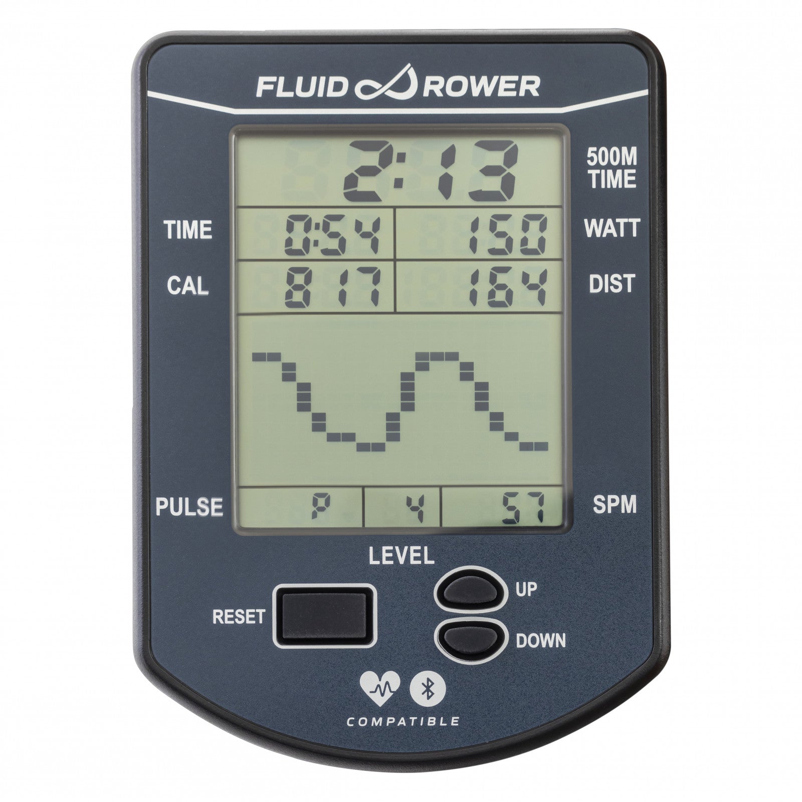 Consola Inteligente: Muestra de forma clara vatios ($W$), tiempo por 500 m, calorías por hora, frecuencia de brazada y distancia total.