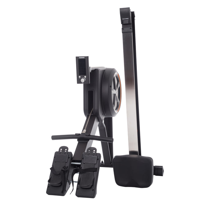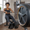 Resistencia Aerodinámica (Aire): A medida que aumenta la intensidad del entrenamiento, el freno de aire toma el protagonismo. Al igual que en el remo real, cuanto más fuerte tires, mayor será la resistencia generada por el aire.