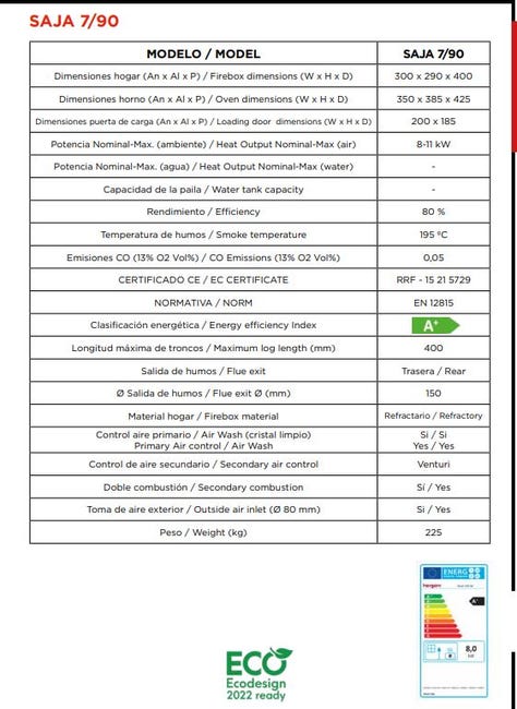 | Diámetro Salida de Humos | 150 mm (Trasera) |