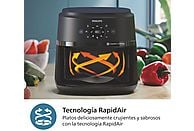Tecnología Exclusiva Rapid Air Equipada con 1700 W de potencia, utiliza la Tecnología Rapid Air patentada por Philips. Este sistema crea un "tornado" de aire caliente que fríe, hornea y asa los alimentos de manera uniforme, logrando una textura perfectamente crujiente por fuera y tierna por dentro, con hasta un 90% menos de grasa.