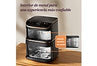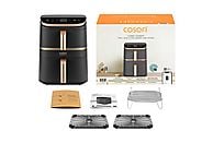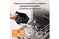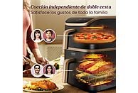 Sus dos cestas independientes permiten cocinar dos alimentos distintos con tiempos y temperaturas diferentes simultáneamente. Su temporizador de hasta 24 horas la convierte en una herramienta multifunción, capaz no solo de freír y asar, sino también de deshidratar.