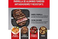 Rendimiento 2 en 1: Freidora y Grill a 220°C Con 1830W de potencia, no solo fríe con aire (Tecnología Extra-Crisp), sino que también es un potente Grill (parrilla). Su capacidad para alcanzar los 220°C (superior a los 200°C estándar) y su rejilla de aluminio fundido (accesorio habitual de grill) permiten asar carnes y verduras, dejando marcas de parrilla.