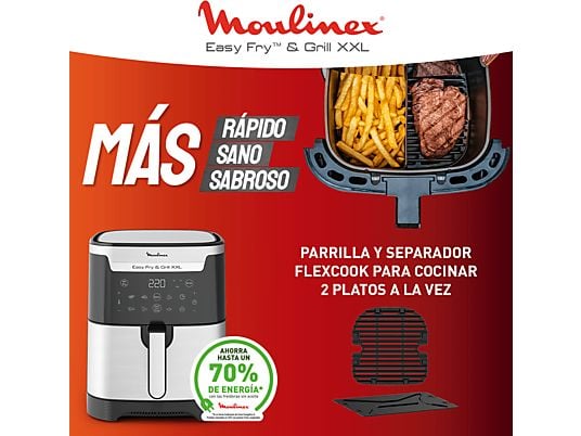 Freidora de Aire y Grill Moulinex Easy Fry XXL EZ801D (6.5L) | Cesta Divisible (Flexcook), 220°C, WiFi (Inox)