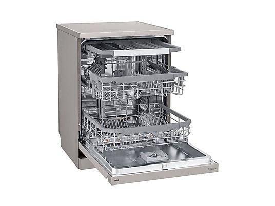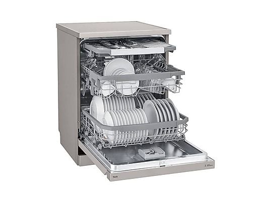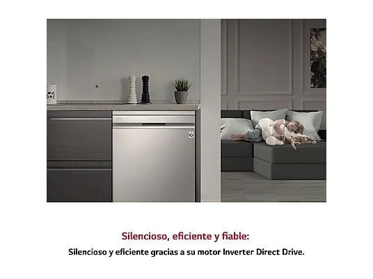 El lavavajillas LG DF365FPS combina potencia, eficiencia y tecnología avanzada. Gracias a True Steam™, reduce las manchas y gérmenes, mientras que QuadWash™ garantiza un lavado uniforme incluso en vajillas difíciles de limpiar. Su motor Inverter Direct Drive 2.0 ofrece durabilidad, eficiencia energética y un funcionamiento silencioso.