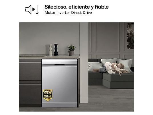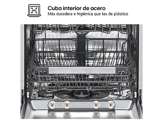 El lavavajillas LG DF587HVS ha sido diseñado para quienes buscan un rendimiento profesional en casa. Su tecnología AI Ready analiza el tipo de carga y optimiza los movimientos y la temperatura del ciclo para obtener resultados perfectos en cada lavado.
