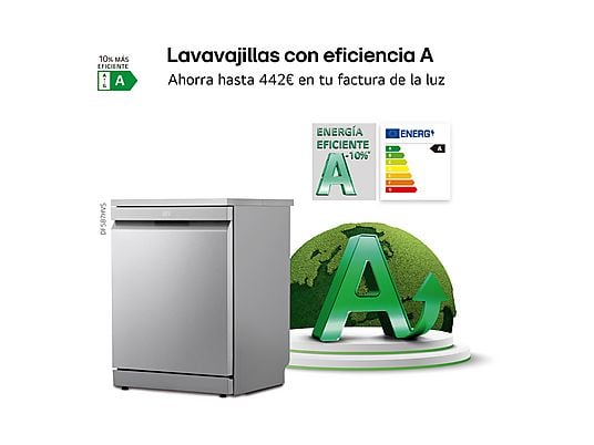 El diseño en acero antihuellas mantiene una estética impecable y moderna, mientras que la bandeja superior para cubiertos optimiza el espacio interior. Su eficiencia energética Clase A y consumo de solo 9.5 litros por ciclo lo convierten en un modelo BetterWay, más sostenible y respetuoso con el medioambiente.