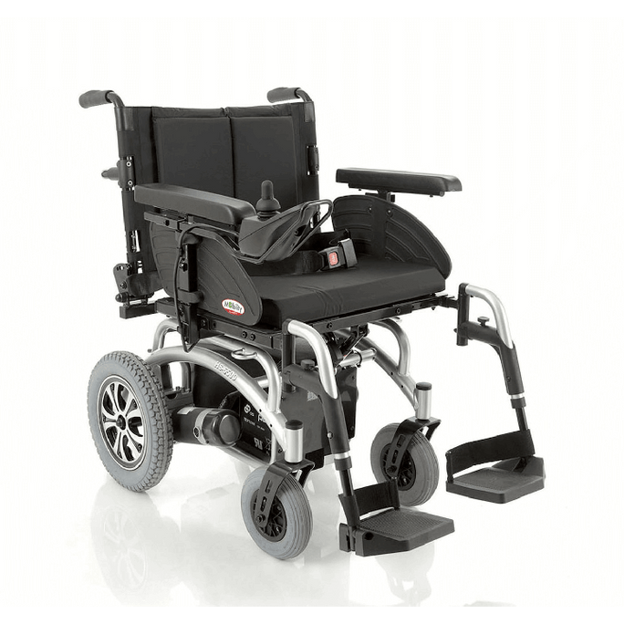 Las ruedas neumáticas absorben eficazmente las irregularidades del terreno, protegiendo articulaciones y mejorando el confort en exteriores. El control mediante joystick regulable en profundidad facilita un manejo preciso y cómodo.