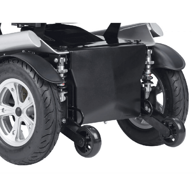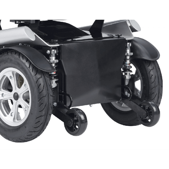 Equipada con suspensión en las ruedas traseras, ruedas macizas, antivuelcos y luces intermitentes, TAIGA ofrece seguridad y estabilidad incluso en superficies irregulares. Los reposabrazos son ajustables en altura y anchura, y los reposapiés son abatibles hacia dentro y fuera, facilitando el acceso y las transferencias.