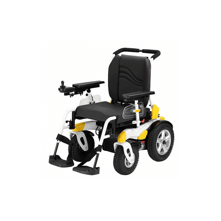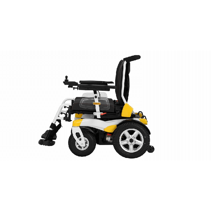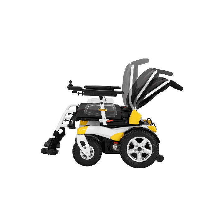 Los reposabrazos son ajustables en altura (20–28 cm) y desmontables. La suspensión de las ruedas traseras y las ruedas anti-pinchazos ofrecen confort, seguridad y bajo mantenimiento en cualquier tipo de terreno. Su radio de giro inferior a un metro permite una maniobrabilidad excelente tanto en interiores como exteriores.
