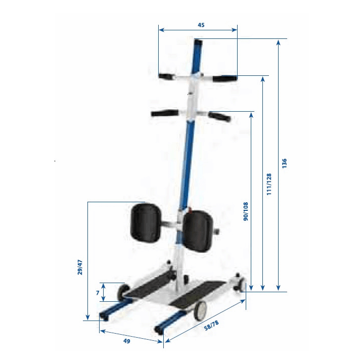 Apoya-piernas Orientables: Los soportes para las rodillas son regulables en altura y se orientan para seguir el movimiento natural de las piernas, facilitando el impulso hacia la vertical.2