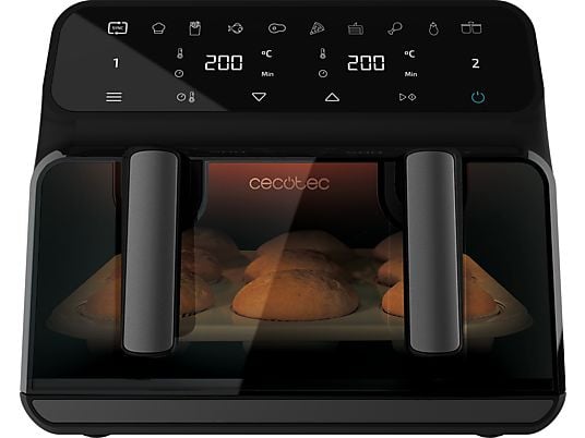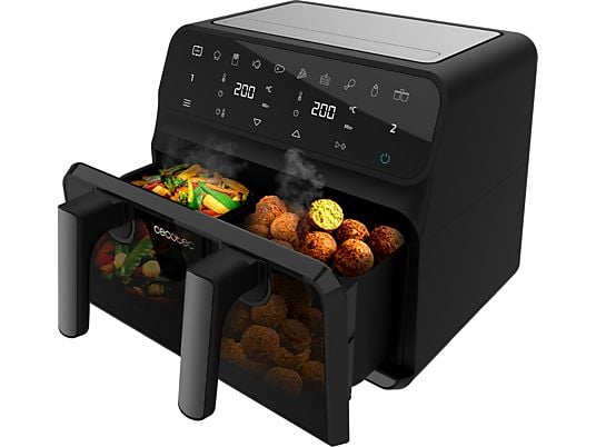 La freidora de aire Cecotec Cecofry Advance 9000 Window te ofrece una versatilidad sin igual. Su innovadora cubeta de 9 litros es divisible, permitiéndote cocinar una gran cantidad de un solo alimento o preparar dos platos diferentes al mismo tiempo en dos zonas independientes de 4.5 litros.