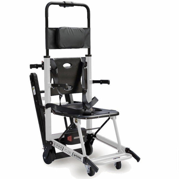 Movimiento sin Esfuerzo: El motor eléctrico acciona las bandas de la oruga, encargándose de la tracción necesaria para superar los peldaños.3 El acompañante solo debe guiar el dispositivo, eliminando el riesgo de lesiones lumbares.
