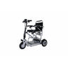 Para garantizar un desplazamiento suave incluso en terrenos irregulares, el scooter incorpora un amortiguador trasero.5 El asiento y el respaldo están fabricados en polipiel ignífuga acolchada, ofreciendo un soporte cómodo y duradero.6 Los reposabrazos son abatibles, lo que simplifica enormemente las transferencias laterales y el acceso al vehículo.