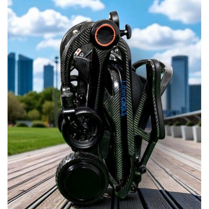 La silla de ruedas eléctrica Karbon Mini de Libercar ha sido diseñada bajo una premisa clara: eliminar las barreras del peso. Su estructura de fibra de carbono no solo le otorga una estética deportiva y moderna, sino que permite que todo el conjunto pese lo mismo que una silla manual ligera. Su innovador diseño de chasis curvo y su sistema de reposapiés plegables permiten reducir su longitud total en 18 cm, facilitando el acceso a los ascensores más diminutos donde otras sillas no pueden entrar.