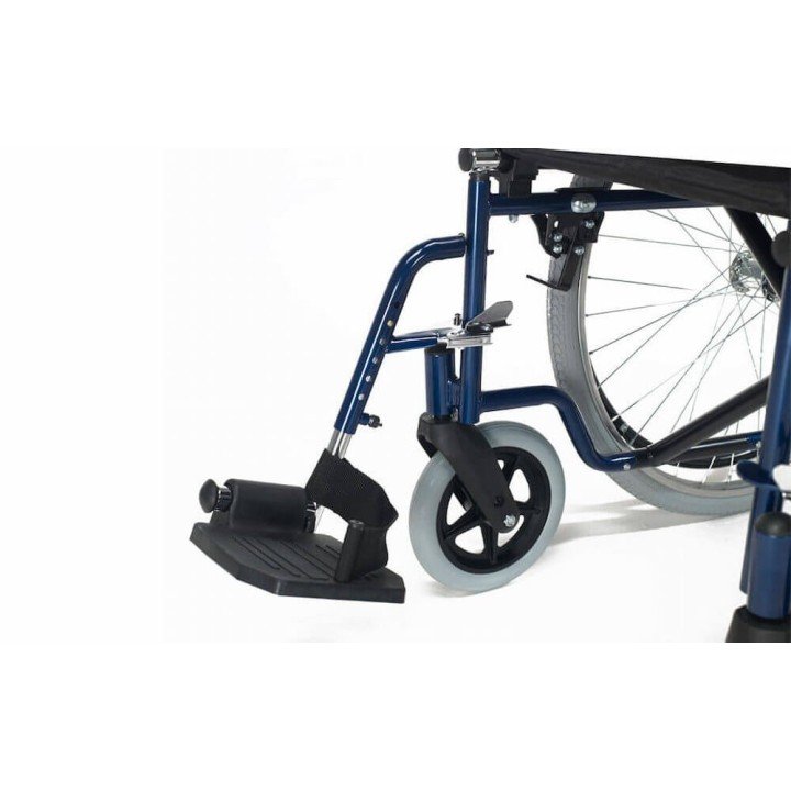 Con un ancho total optimizado (Ancho de asiento + 16 cm), la silla mantiene una maniobrabilidad equilibrada.10 Sus ruedas traseras de 600 mm permiten la autopropulsión autónoma, mientras que su diseño en color azul le otorga un aspecto moderno y atractivo.11