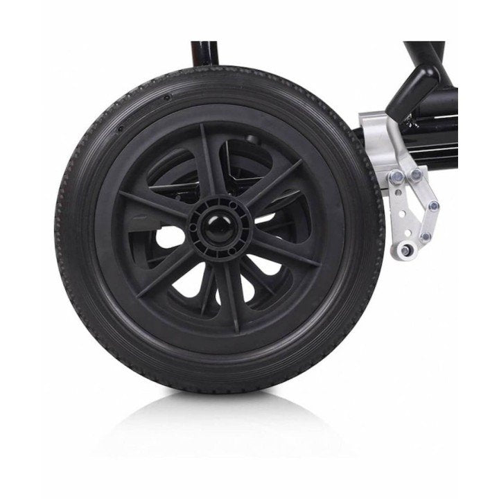 Sistema Quick Release: Las ruedas traseras cuentan con un sistema de extracción rápida, permitiendo desmontarlas en segundos para reducir el espacio de almacenamiento y el peso de carga.