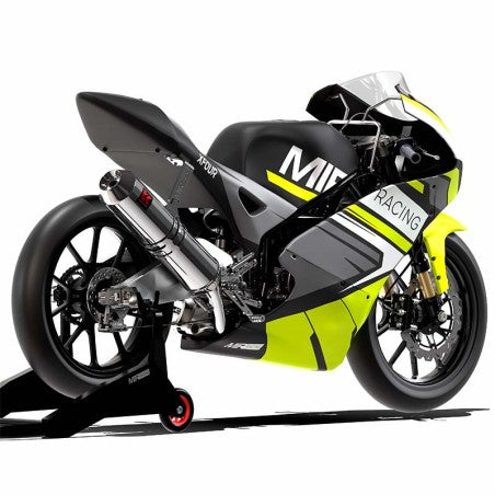La parte ciclo ha sido renovada para ofrecer un comportamiento de Gran Premio: incorpora un chasis tubular de acero cromo-molibdeno extremadamente rígido y un basculante de aluminio de última generación. La precisión en el tren delantero es absoluta gracias a las horquillas regulables con cartucho Andreani, complementadas por un amortiguador de dirección Fast Ace y un sistema de frenada que combina bomba Fórmula con pinza JJuan. Con llantas de 17 pulgadas, la Moto5 no es solo una moto de aprendizaje; es el estándar de oro para los futuros profesionales.